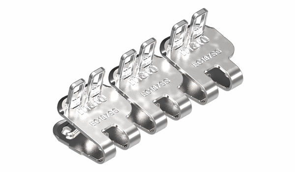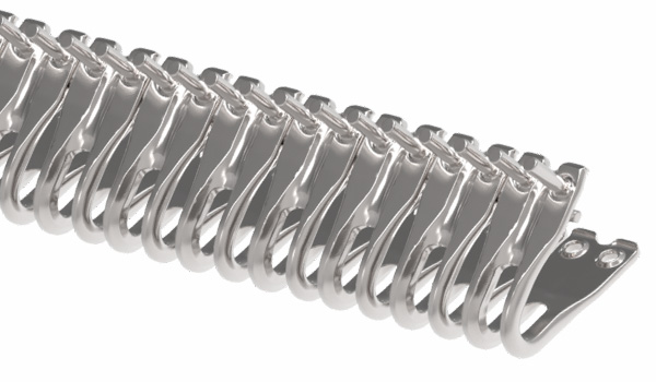 Los sujetadores de alambre plano de acero inoxidable se retienen en una barra con un parche textil preinstalado son ideales para cinturones de algodón y fieltro. Esto logra la mejor protección de la ropa contra daños y ofrece bajos niveles de ruido, desgaste abrasivo y desgaste de la conexión de la correa.